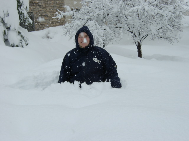 This is a true photo showing how deep the snow is. Heidi was NOT sitting down in the snow for this picture. - This is a true photo showing how deep the snow is. Heidi was NOT sitting down in the snow for this picture.